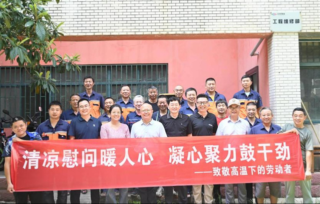 烈日炎炎,熱浪滾滾,為關(guān)心職工身體健康,營(yíng)造良好工作氛圍,7月15日上午,公司工會(huì)精心組織開(kāi)展了2025年度“夏日送清涼”活動(dòng)。公司黨總支書(shū)記嚴(yán)俊華帶隊(duì),副總經(jīng)理張奎、副總經(jīng)理兼工會(huì)主席胡冰、總經(jīng)理助理高利霞分別前往汀蘭苑小區(qū)客服中心、竹苑4棟學(xué)生公寓維修辦公室、楓苑1棟學(xué)生公寓及篤行樓開(kāi)展夏日送清涼活動(dòng),為在高溫下仍堅(jiān)守崗位的一線(xiàn)職工送去清涼與關(guān)懷。