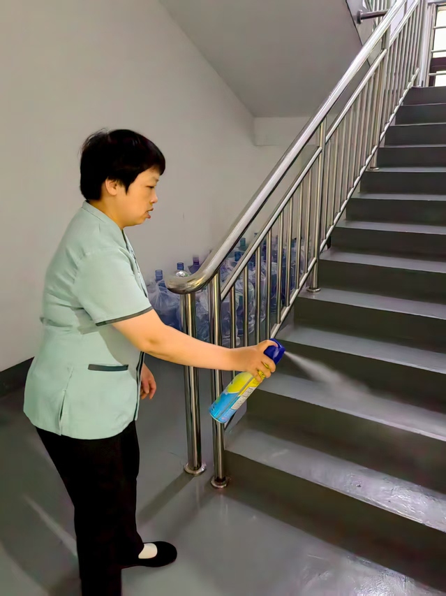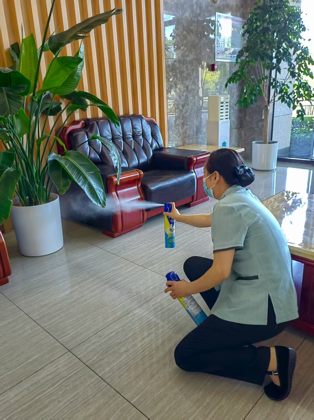 針對基孔肯雅熱通過蚊蟲傳播的特性,中心將責任區(qū)域消殺作為防控核心,對樓道、會議室、大廳、餐廳等人員密集場所實施高頻次消殺作業(yè),確保不留防控死角。為強化防控效果,中心還對電梯轎廂、衛(wèi)生間等重點區(qū)域?qū)嵭忻咳障麣⒅贫龋攸c清潔電梯按鈕、門把手等高頻接觸部位,最大限度降低病毒傳播風險。結(jié)合愛國衛(wèi)生運動,中心同步開展環(huán)境衛(wèi)生整治行動,組織人員疏通堵塞排水溝、及時清理外圍枯枝落葉,從源頭上消除蚊蟲滋生環(huán)境。